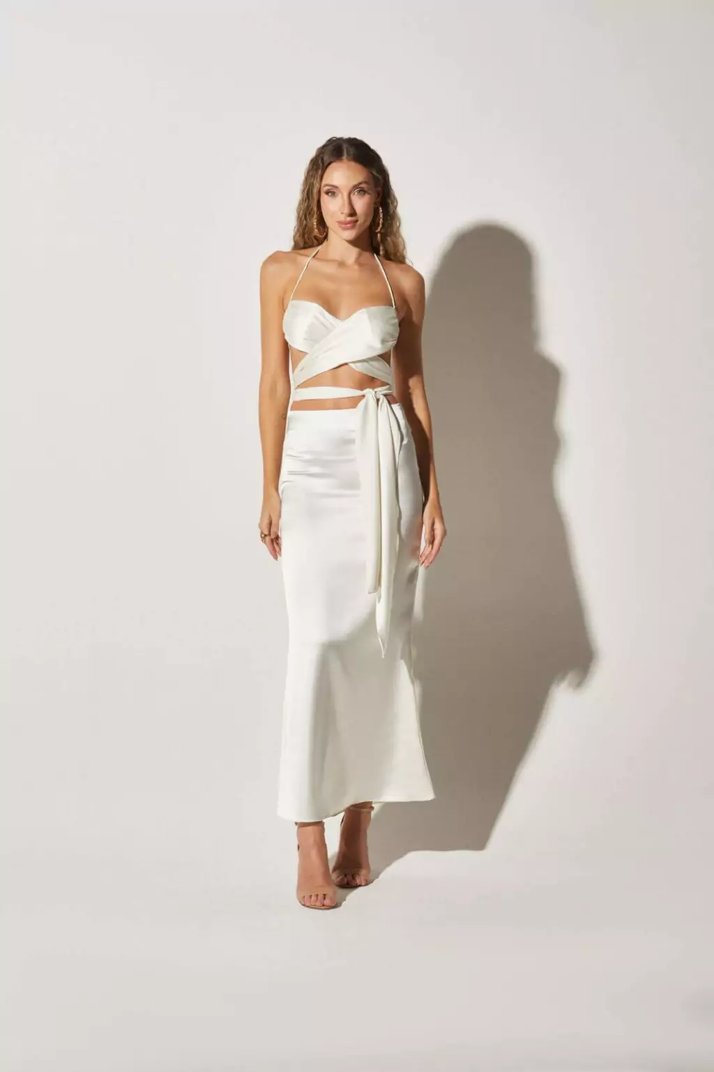 Cada detalhe do Conjunto Santorini foi projetado para proporcionar uma sensação exclusiva. A saia longa flui graciosamente, adicionando um toque de glamour, enquanto o top de amarração oferece inúmeras possibilidades de estilo. Os detalhes cuidadosamente elaborados não apenas adicionam elegância, mas também destacam a exclusividade deste conjunto.